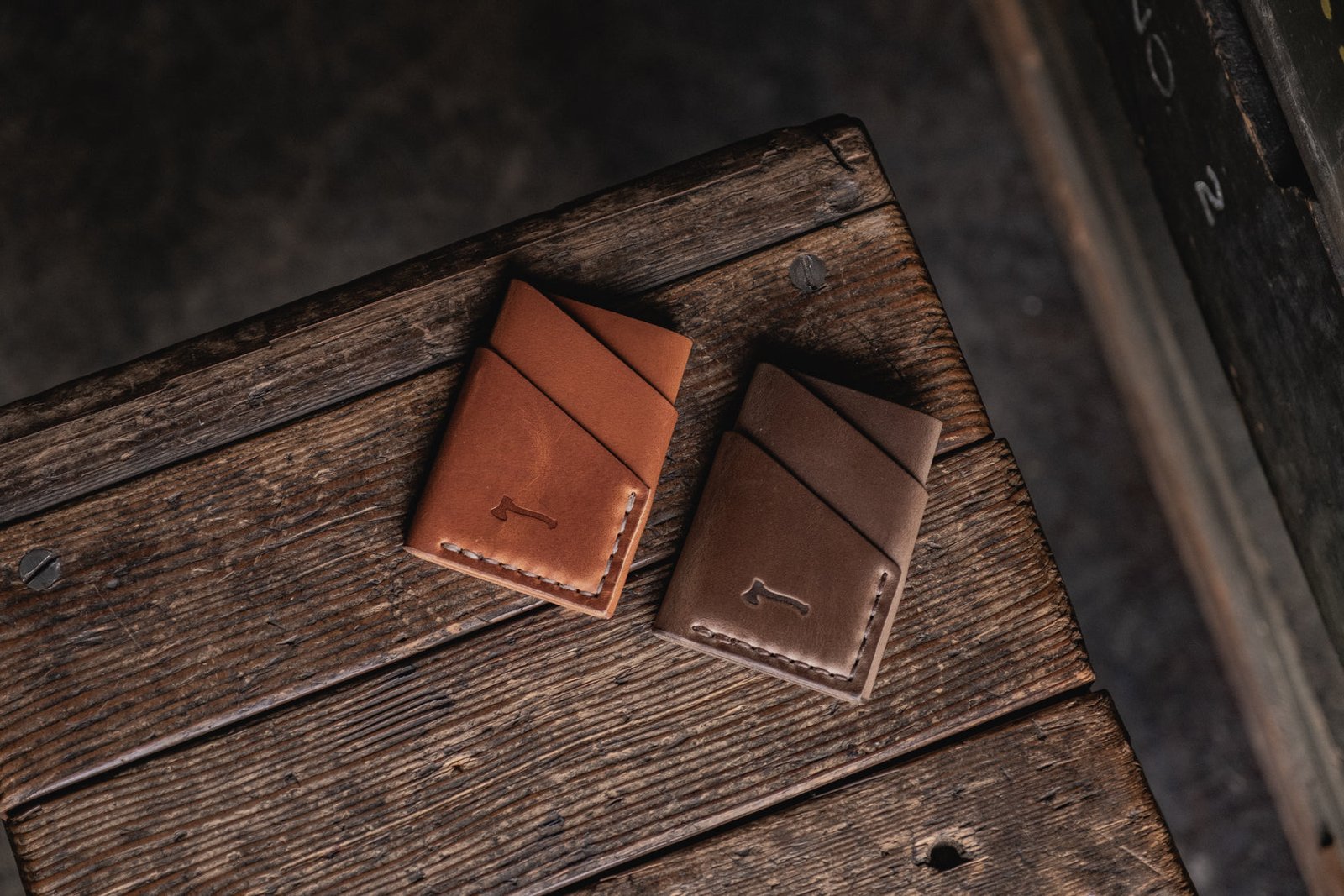 A minimal card wallet in the world famous luxury pull up Horween Chromexcel leather allowing for your indispensable cards plus some cash. Hand stitched for long life and durability.