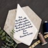 Our men’s white handkerchief style and women’s dainty white lace style are embroidered with our popular poems for the father and mother of the bride. Poem will be customized with your name, wedding date and thread color of your choosing.